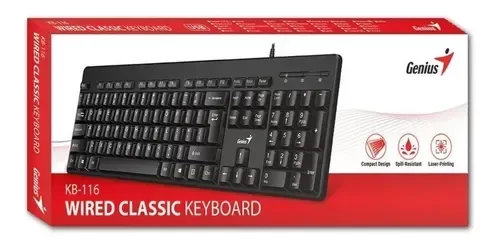 Teclado Genius KB-116 USB Negro – Confiabilidad y Simplicidad para el Día a Día El Genius KB-116 es un teclado de tamaño completo con diseño clásico y funcional, ideal para el hogar, la oficina o el estudio.